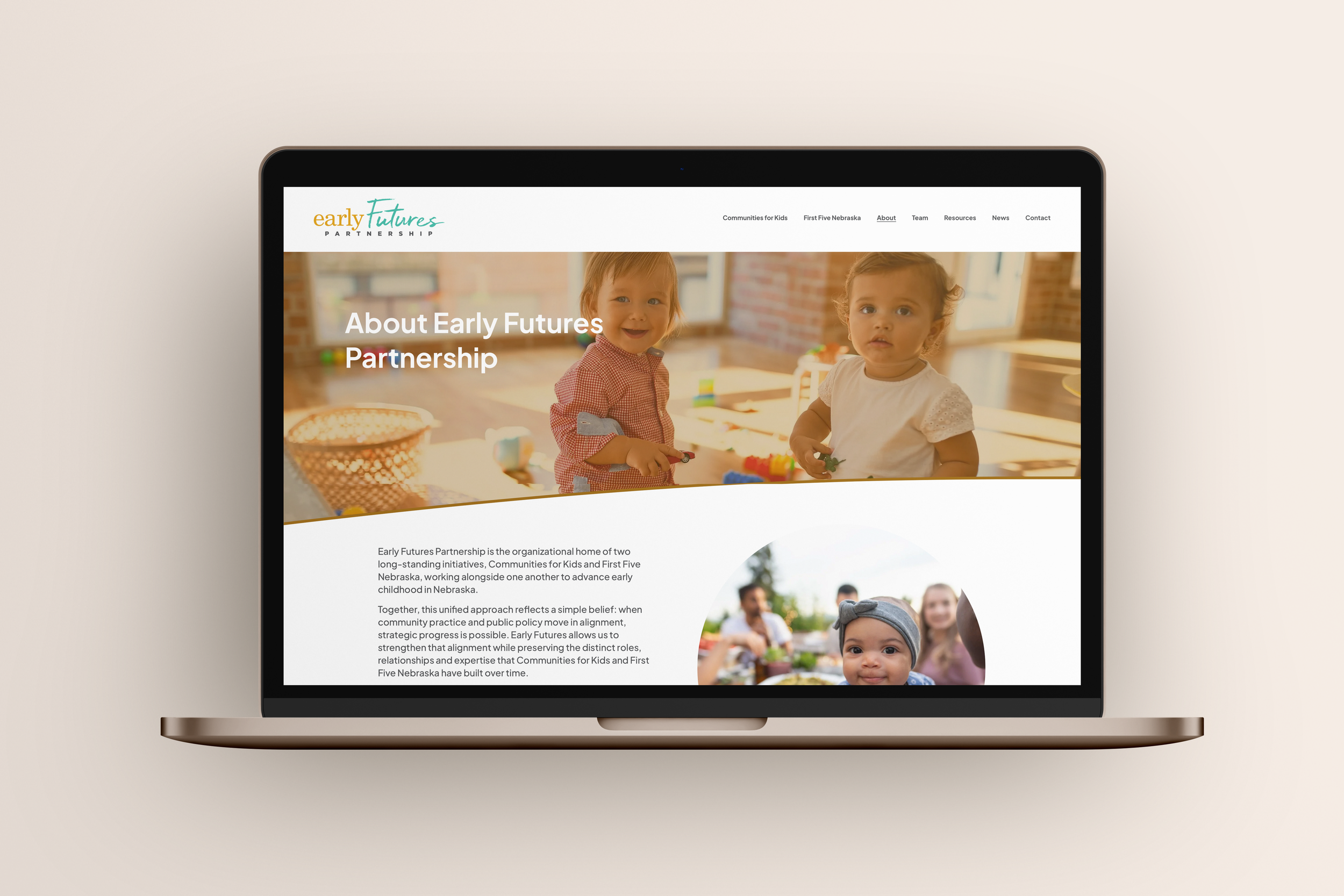 Early Futures Partnership is an advocacy-focused initiative supporting early childhood and policy-centered work. Bythwood Creative was engaged to design and build a unified website platform that would bring together two existing initiative sites under one shared resource umbrella.
